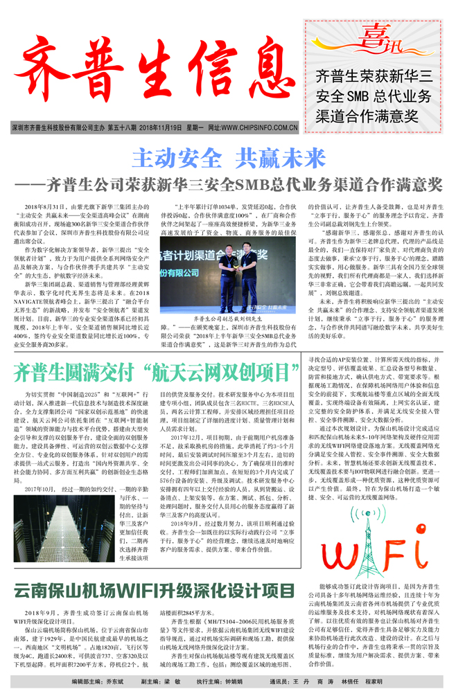 主動安全 共贏未來 ——齊普生公司榮獲新華三安全SMB總代業(yè)務(wù)渠道合作滿意獎