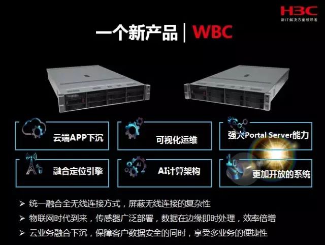 新華三在此次大會上,正式對外發(fā)布了WBC(Wireless Beneath Cloud Controller無線多業(yè)務控制器),作為新華三無線領(lǐng)域的重磅新品面向市場,融合多種無線技術(shù),具備六大特性:云端APP下沉、可視化運維、強大Portal Sever能力、融合定位引擎、AI計算架構(gòu)和更開放的系統(tǒng)。面對萬物互聯(lián)時代,傳感器廣泛部署,WBC不僅可以實現(xiàn)數(shù)據(jù)在邊緣即時處理,還可以使得效率倍增;此外,WBC還將運維、認證、位置大數(shù)據(jù)、SaaS應用等業(yè)務下沉到網(wǎng)絡中,在保障客戶數(shù)據(jù)安全的同時,更享受多業(yè)務處理的便捷性。